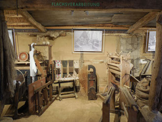 Unter dem Begriff „Flachsverarbeitung“ stehen neben der Handbrake die Brakmaschine, neben dem Schwingbock die Schwingmaschine und es gibt bäuerliche bemalte Hechelbretter neben dem Hechelbock.